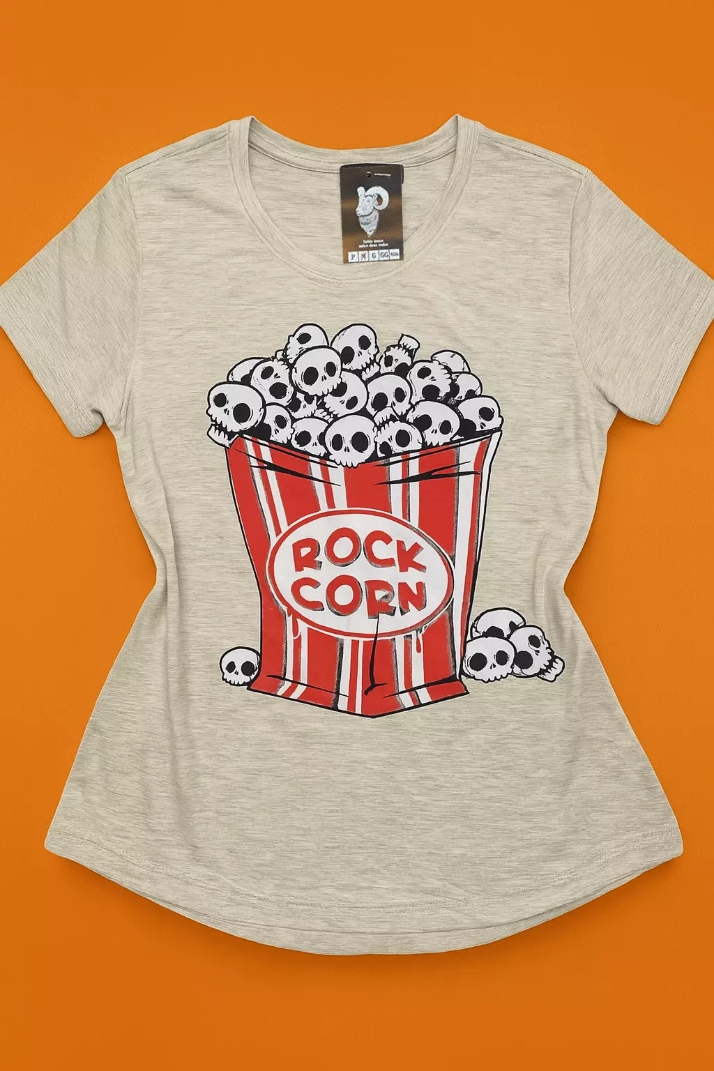 Estampa: Pipoca estilo retrô com toque divertido e roqueiro